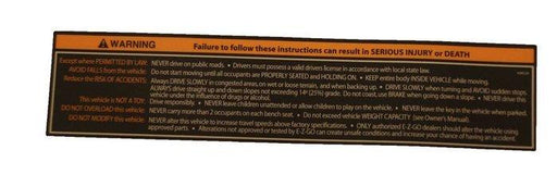 603872 The E-Z-GO Golf Car Safety Label is an informative label used on Gas & Electric vehicles that provides useful safety and warning facts t...